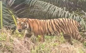 Siak(SegmenNews.com)- Masyarakat Kampung Benteng Hulu, Kecamatan Mempura, Kabupaten Siak, Riau cemas dan takut melakukan aktivitas di luar rumah setelah seekor harimau sumatera diketahui berkeliaran di kampung tersebut. Kehadiran hewan dilindungi itu diketahui setelah terekam kamera...