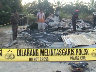 Rumah Rosidin di Desa Kota Garo, Kecamatan Tapung Hilir, Kampar musnah dilalap api, Rabu (15/6). Kebakaran menyisakan puing-puing bangunan dan rongsokan besi. Rosidin mengaku gagal menyelamatkan harta benda. Saat kejadian, ia terlambat memadamkan api sehingga kebakaran menghanguskan seluruh isi rumah dan mobilnya, termasuk uang upah petani Rp150 juta.