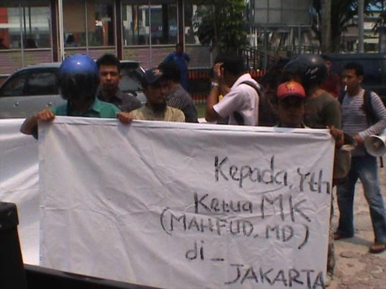 Warga menilai MK bertanggung jawab terhadap kekisruhan pesta demokrasi. Surat berukuran 4 kali 4 meter ini berisi tuntutan agar Ketua MK Mahfud MD menetapkan calon Wali Kota Pekanbaru agar tidak terjadi kekosongan kekuasaan. Jika tidak, warga khawatir terjadi konflik sosial di tengah masyarakat.