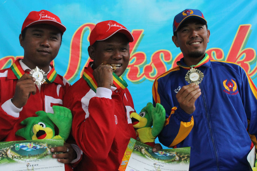 Medali emas pada nomor Adam,  Penyerahan medali tersebut diserahkan langsung oleh Wakil Bupati Hafith Syukri, juga Ketua Harian Sub PB PON Rokan Hulu, beserta kapolres rokan Hulu, Yudi Kurniawan, Kamis (13/9).