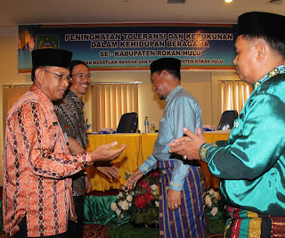 “Rokan Hulu belum ada isu Sara bagi umat antar agama, kerukunan umat beragama. Ini perlu ditingkatkan dan di pertahankan,” imbuh wabup saat membuka acara Peningkatan Toleransi dan kerukunan dalam kehidupan beragama di Rokan Hulu yang ditaja oleh Kesbang Polinmas Rohul, Rabu (26/9) bertempat di Hotel Sapadia.