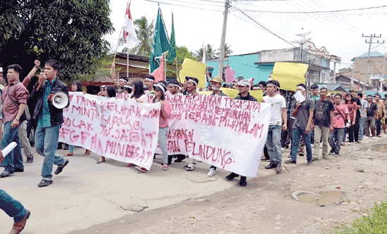 Elemen mahasiswa yang tergabung dalam Koaliasi Mahasiswa Masyarakat Peduli Paluta ini, menggelar aksi dengan berjalan kaki melintasi lajur Jalan Protokol Gunung Tua, dari Lapangan Merdeka, Kelurahan Pasar Gunung Tua dengan membawa berbagai spanduk putih, poster dengan memakai pakaian seragam masing-masing organisasi kemahasiswaan ke Mapolsek Padang Bolak yang berjarak sekitar satu kilometer. Massa mendapat pengawalan ketat aparat kepolisian.