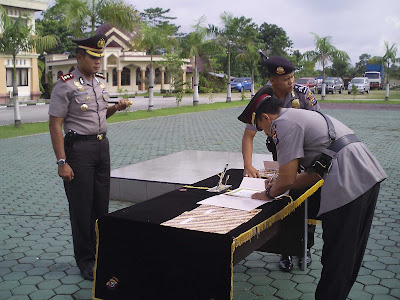 SIAK (Segmennews.com)- Sembilan perwira dilingkungan Polres Siak melakukan upacara serah terima jabatan (sertijab), Kamis (8/11/2012) bertempat di Mapolres Siak jalan Lintas Dayun.