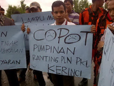 Pangkalan Kerinci (Segmennews.com)- Forum Peduli Masyarakat Pelalawan (FPMP) berdemo menuntut pimpinan PLN Pangkalan Kerinci dicopot. Hal ini karena seringnya pemadaman jaringan listrik di ibukota Kabupaten Pelalawan, Pangkalan Kerinci.