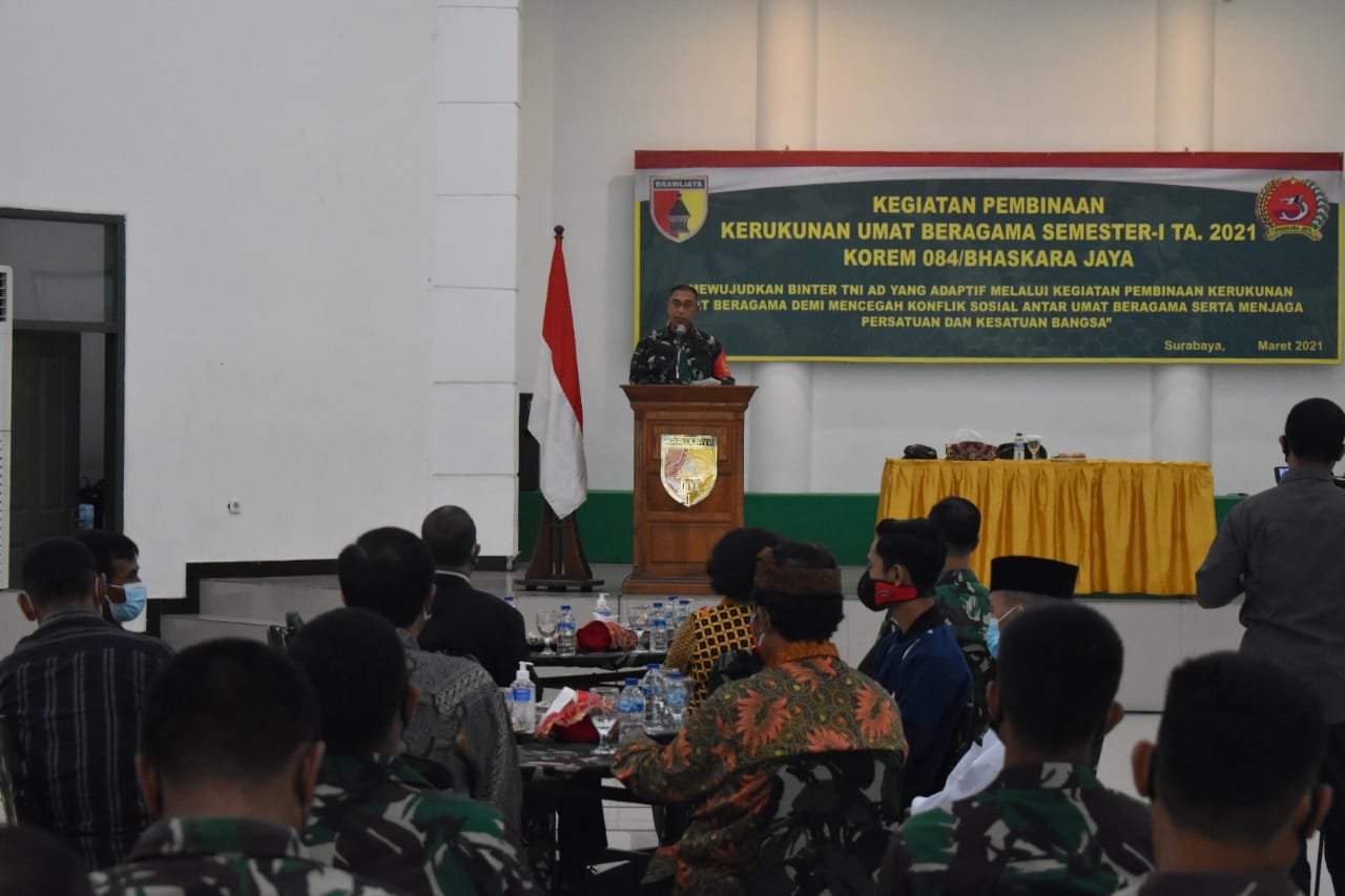 Surabaya(SegmenNews.com)- Kerukunan antar umat di lingkungan Korem 084/Bhaskara Jayaterus dipupuk dan dibina sebaik mungkin guna mencegah timbulnya suatu konflik sosial di masyarakat.