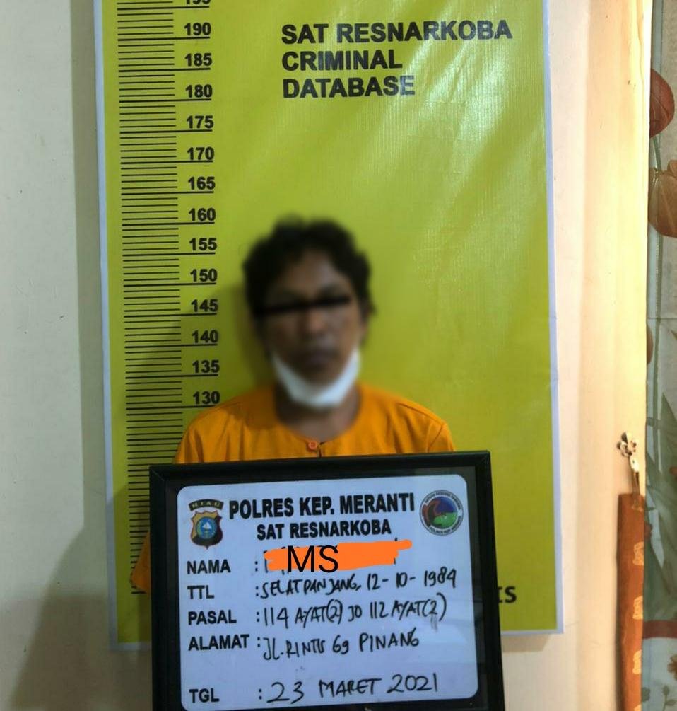 Kapolres Kepulauan Meranti, AKBP Eko Wimpiyanto Hardjito SIk mengatakan, Ms ditangkap di rumahnya Jalan Rintis Gg. Pinang sekitar pukul 00.30 waktu setempat. Saat ditangkap ia sedang meracik diduga sabu.