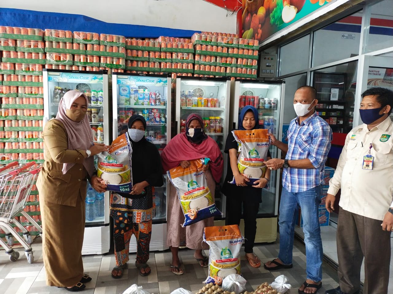 Rohul(SegmenNews.com)- Kepala Desa Pematang Berangan, Imelda Karim didampingi tenaga kesejahteraan sosial kecamatan (TKSK) menyerahkan bantuan sosial pangan (BSP) kepada masyarakat desa pematang berangan yang kurang mampu melalui program pemerintah pusat kementrian sosial yang bertempat di swalayan Ilham mart pasir putih pasir pengaraian kecamatan rambah, Senin (29/3/2021).