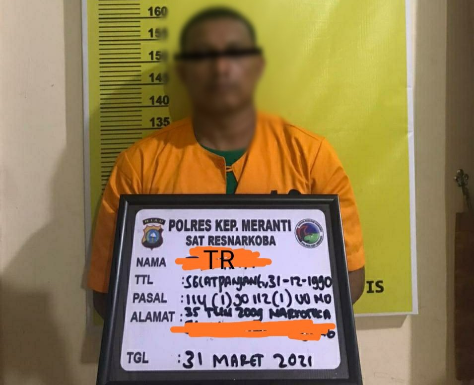 Meranti(SegmenNews.com)- Bisnis terlarang seorang pengedar narkotika jenis sabu-sabu berinisial Tr (31) berakhir di tangan petugas dari Sat Res Narkoba Polres Kepulauan Meranti. Dia ditangkap di rumahnya, Selatpanjang Selatan, Rabu (31/3/2021) malam.