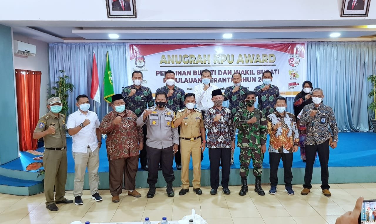 Meranti(SegmenNews.com)-Wakil Bupati Kepulauan Meranti AKBP (Purn) H. Asmar, menghadiri acara Anugrah KPU Award 2020, kegiatan dalam rangka mengapresiasi kinerja KPU dalam penyelenggaraan pesta demokrasi khususnya di Kepulauan Meranti itu, digelar di Aula Afifa Futsal, Selatpanjang, Senin (5/4/2021).