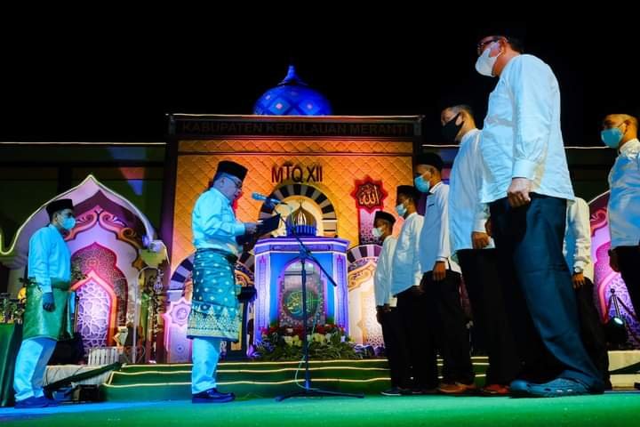 Penutupan MTQ Ke-12 Tingkat Kabupaten Kepulauan Meranti Tahun 2021, ditandai dengan penekanan tombol Sirene oleh Wakil Bupati H. Asmar didampingi Forkopimda, Kepala OPD dan Para Camat Se-Kabupaten Meranti.