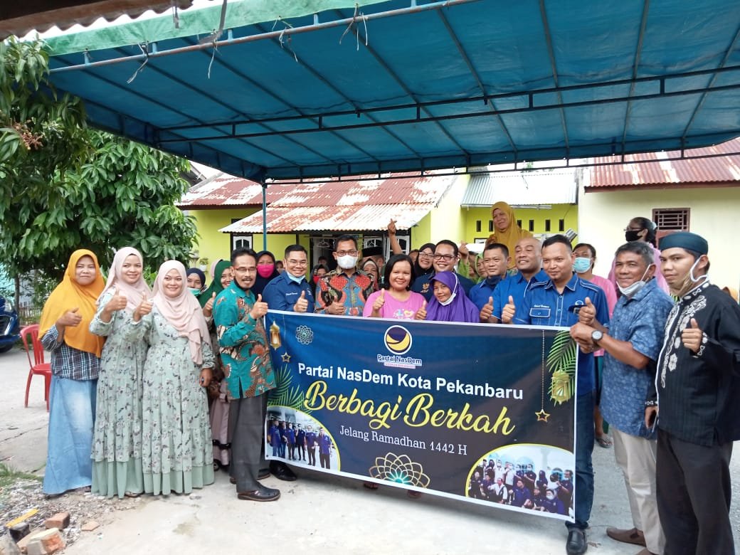 Pekanbaru(SegmenNews.com)- Menjelang masuknya bulan suci Ramadhan 1442 H/2021 M, Partai NasDem Kota Pekanbaru berbagi berkah, berupa pembagian sembako di Kelurahan Mentangor, Kecamatan Kulim, Kota Pekanbaru, Jum’at (09/4/2021).
