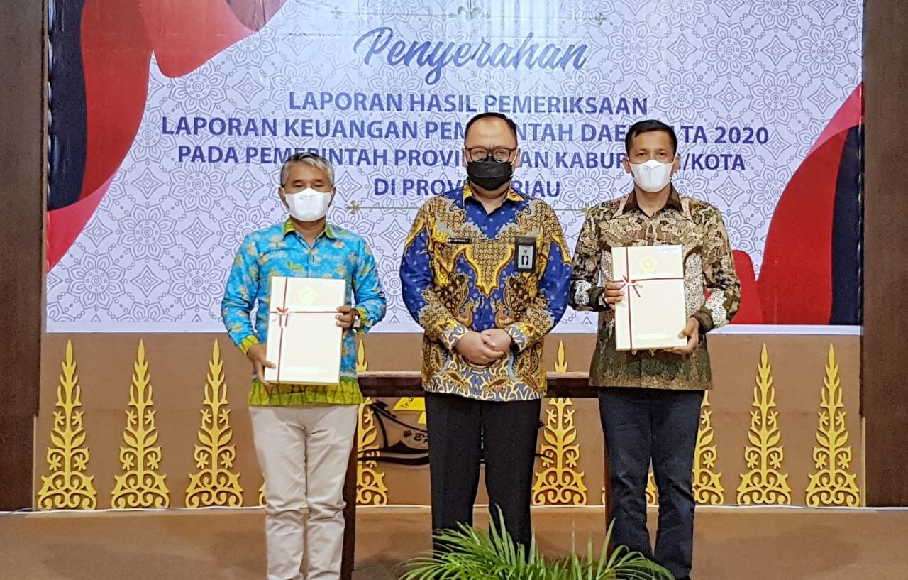 Penyerahan hasil pemeriksaan laporan keuangan Pemkab Meranti tahun anggaran 2020 itu, dilakukan langsung oleh Ketua BPK RI Perwakilan Riau, Widhi Hidayat kepada Bupati Kepulauan Meranti H. Muhammad Adil SH dan Ketua DPRD Meranti Jack Ardiansyah, di Gedung BPK RI Perwakilan Riau, Jalan Sudirman, Pekanbaru, Kamis (15/4/2021).