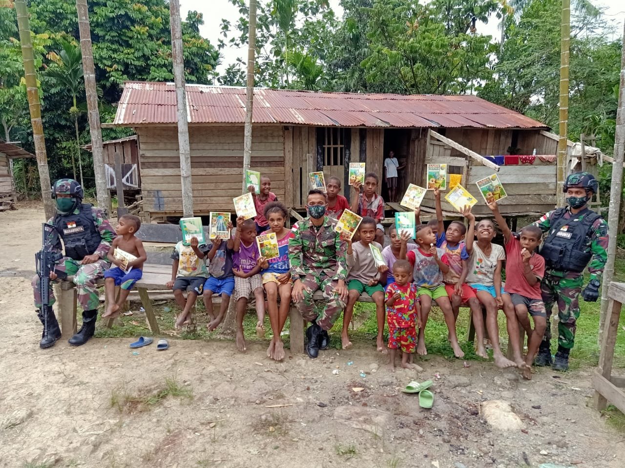 Keerom, Papua(SegmenNews.com)- Satgas Pamtas Yonif Mekanis 512/QY tak henti-hentinya untuk terus memacu semangat belajar anak-anak di perbatasan Indonesia-Papua Nugini, tepatnya di Kampung Kalipapar, Distrik Waris, Kabupaten Keerom, Papua.
