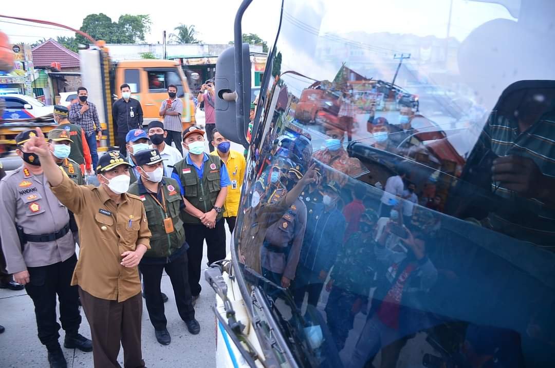 Pekanbaru(SegmenNews.com)- Melonjaknya angka positif Covid-19 di Pekanbaru beberapa pekan ini membuat Wali Kota Pekanbaru terpaksa mengeluarkan kebijakan tegas. Salah satunya dengan menutup akses keluar masuk Kota Pekanbaru yang sebelumnya ditandai dengan penyekatan moda transportasi darat sejak kemarin.