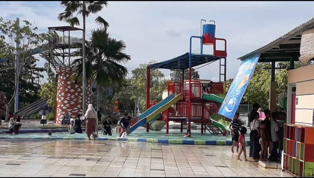 Pantauan wartawan dilapangan salah satu tempat wisata air Kuantan Regency Waterpark telah buka sejak Jum’at tanggal 14 hingga hari ini Sabtu (15/5/2021). Wisata air tersebut ramai pengunjung.