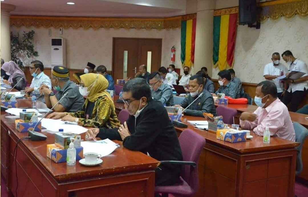 Pekanbaru(SegmenNews.com)- Badan Anggaran (Banggar) DPRD Provinsi Riau melakukan rapat dengan Tim Anggaran Pemerintah Daerah (TAPD) Provinsi Riau dalam rangka finalisasi pembahasan Rancangan Peraturan Daerah (Ranperda) tentang pertanggungjawaban pelaksanaan APBD Provinsi Riau tahun anggaran 2020, di Ruang Rapat Medium DPRD Provinsi Riau, Rabu (30/06/2021).