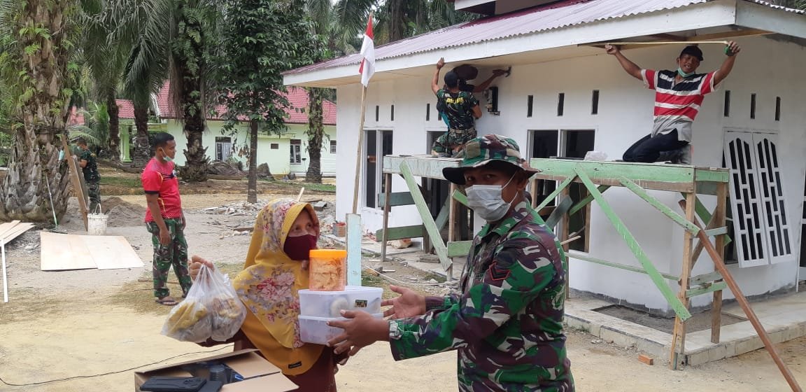 Ibu Liana mengatakan, minuman yang diberikan tersebut merupakan bentuk dukungan dari ibu-ibu perwiritan kepada TNI atas kerja kerasnya dalam merehap musholla di desa mereka.