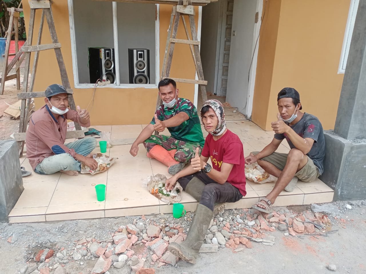 Usai lelah bergotong royong membangun RTLH milik Bu Dede Angraini, Satgas TMMD bersama warga setempat kemudian makan bersama.