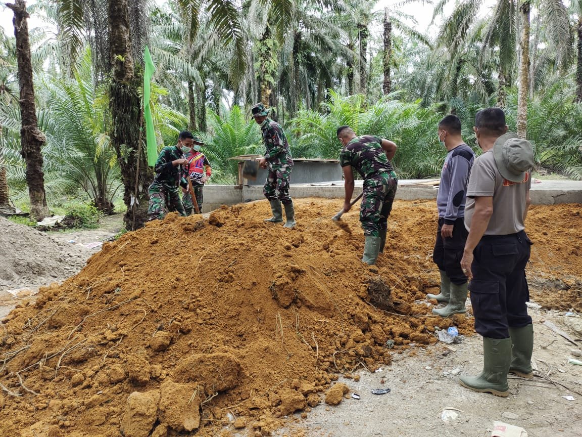 Untuk segera menyelesaikan pengerjaan ini, anggota TNI-Polri yang tergabung dalam Satgas TMMD ke-111 melaksanakan Goro meratakan tanah box culvert.