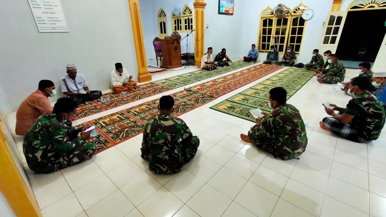 Sebagai bentuk rasa syukur atas pencapaian tersebut, anggota Satgas TMMD ke-111 bersama dengan warga RT 06 RW 02 Dusun Selean Kep. Bagan Sinembah Jaya, Kamis malam (08/07/2021) melaksanakan kegiatan Yasinan di Masjid Nurul Iman Salean.
