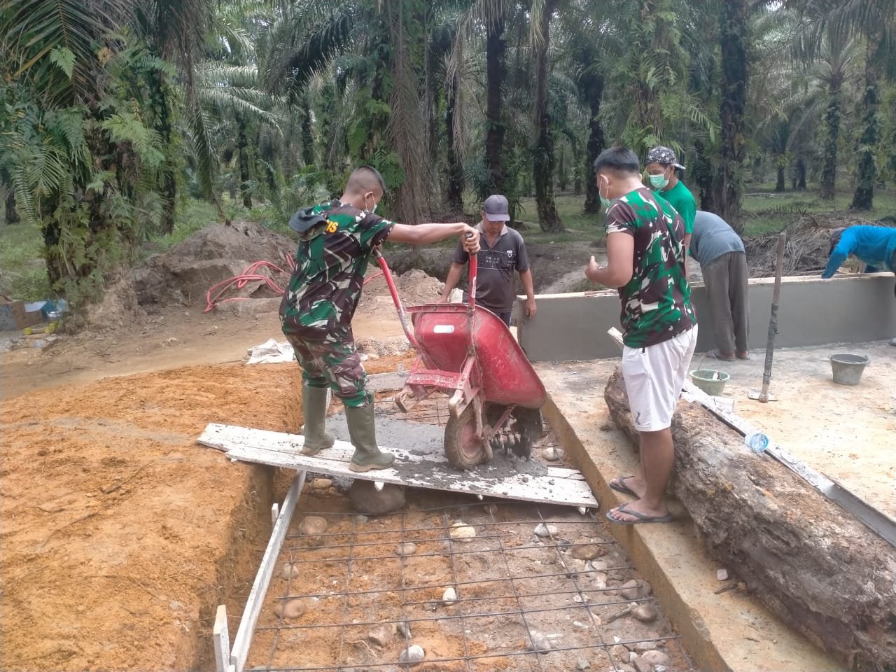 “Adapun kegiatan hari ini melaksanakan kelanjutan pembuatan mal lantai pijak/atas, dan dilanjutkan pemasangan mal tiang hasil kerja persentasi 85 persen,” kata danramil 03 Bgs Kapten Inf Y Mendropa.