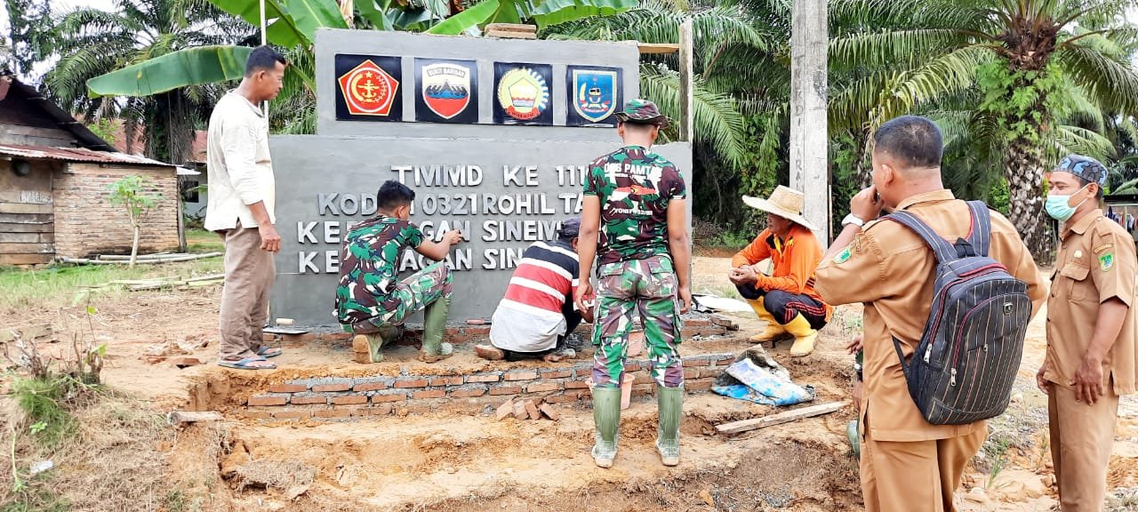 Seperti halnya pembuatan tugu TMMD yang berlokasi di simpang jalan dekat kantor Kepenghuluan Bagan Sinembah Jaya ini.