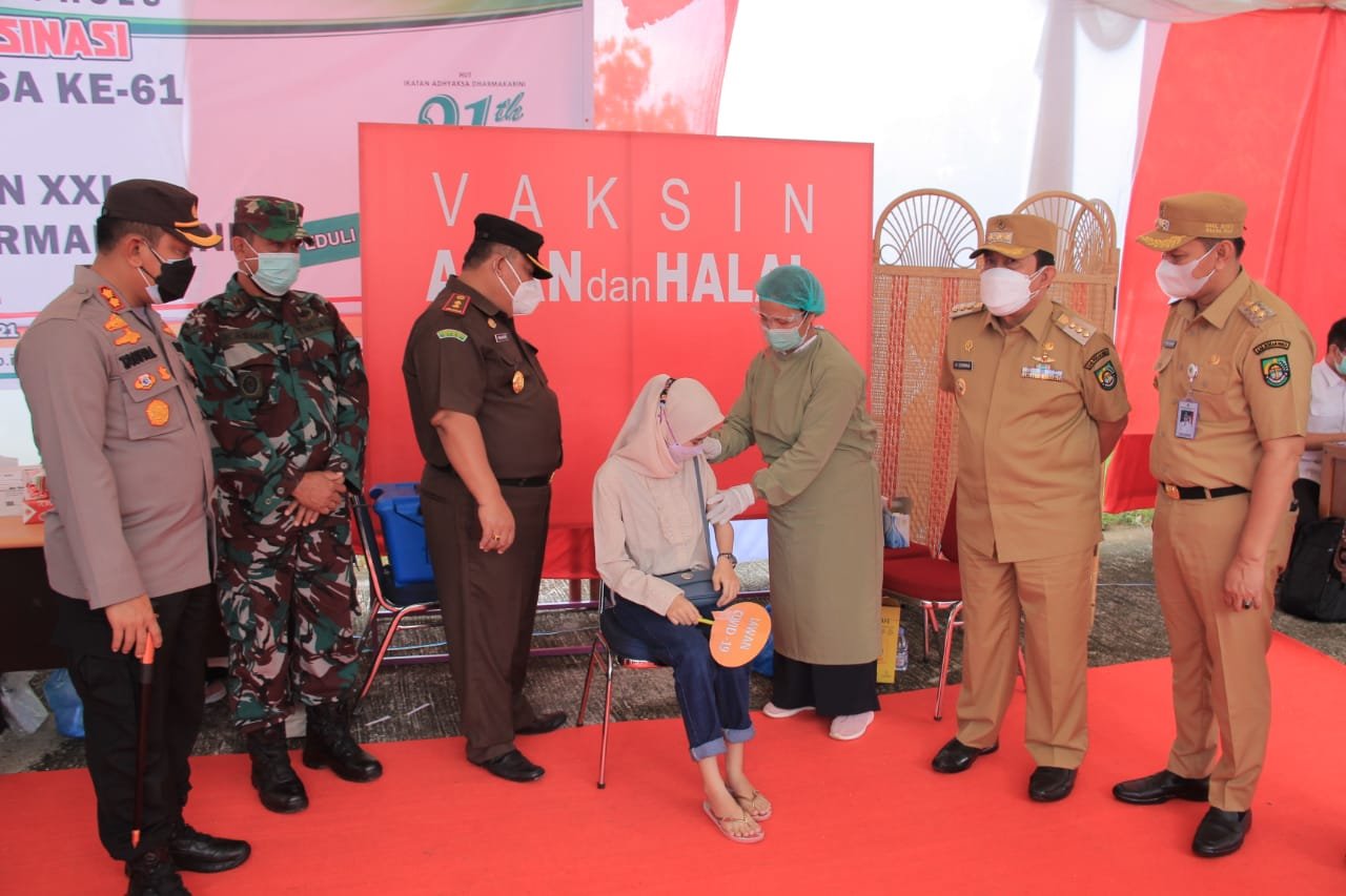 Bekerjasama dengan Dinas Kesehatan Kabupaten Rokan Hulu, sebanyak 28 Vial vaksin telah disediakan atau untuk 280 orang dengan target ASN dan Buruh Harian Lepas (BHL).