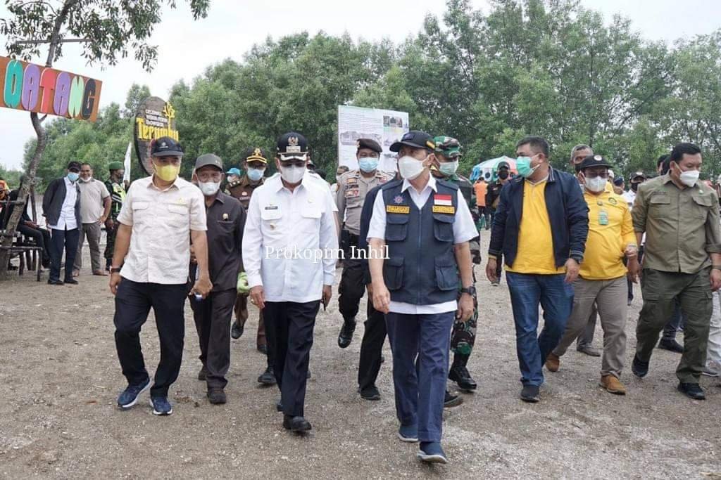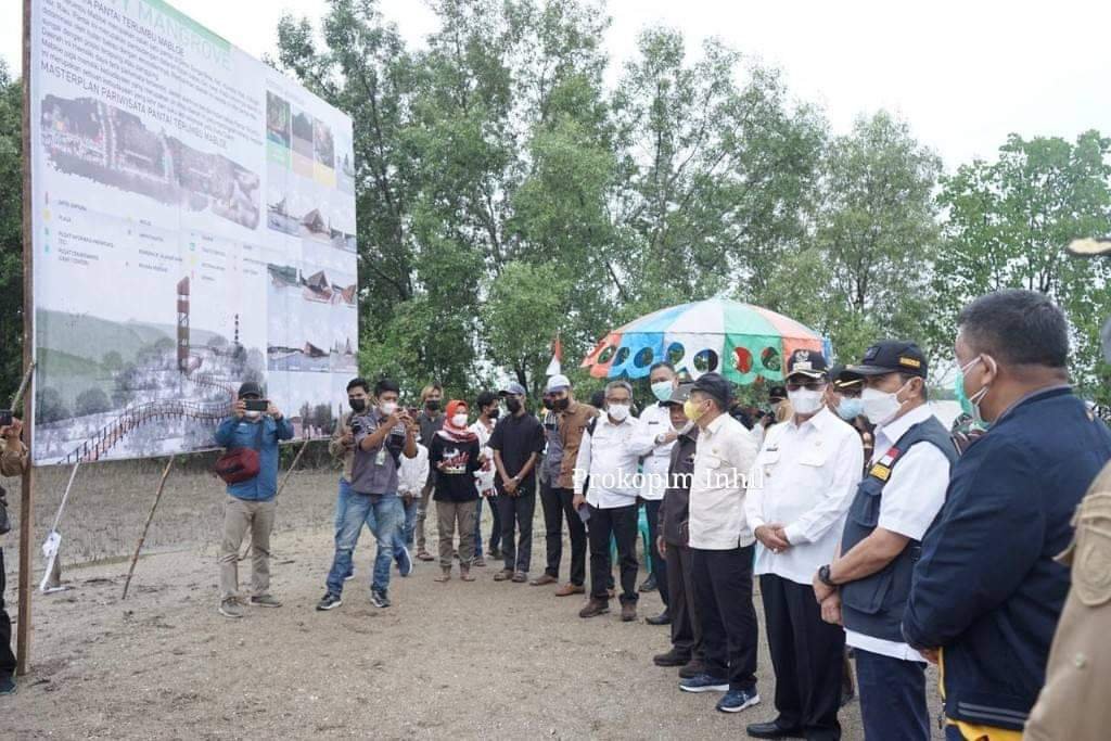 Selain memaparkan potensi wisata, Bupati Wardam juga melakukan penanaman pohon mangrove secara simbolis di tepian pantai khususnya diwilayah Desa Sungai Bela.