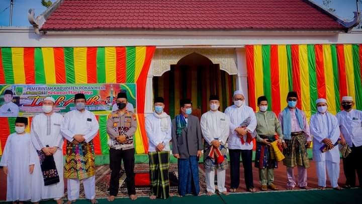 Meskipun Rohil tidak zona dan tetap boleh melaksanakan sholat Idul Adha dilapangan, sholat tersebut telah mengikuti protokol kesehatan dengan menggunakan masker dan jaga jarak.