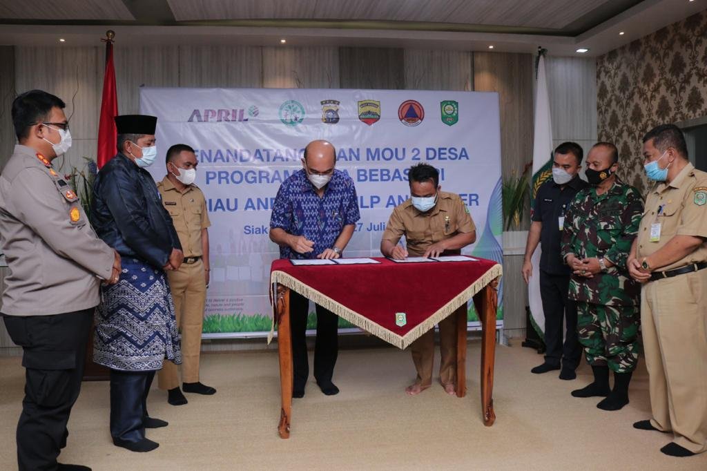 Program Desa Bebas Api yang diinisiasi oleh Grup APRIL di bawah naungan Grup Royal Golden Eagle (RGE) mengajak seluruh pihak pemangku kepentingan dan masyarakat untuk melakukan pencegahan karhutla untuk mencapai misi “zero fire” serta membantu masyarakat dalam mencegah penyebaran COVID-19.