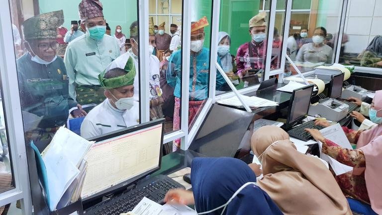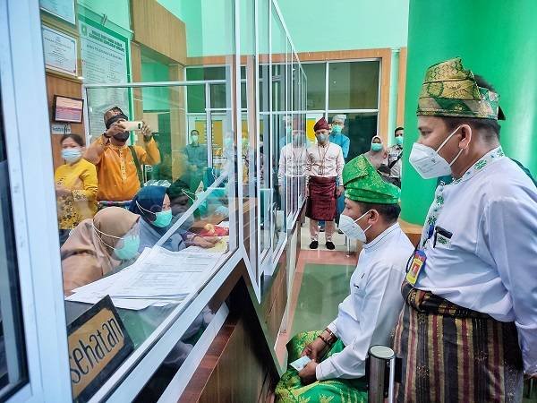 Peresmian Pelayanan kesehatan gratis cukup menggunakan KTP langsung dilakukan oleh Bupati H. Muhammad Adil SH, dengan mencoba berobat menggunakan KTP-nya di RSUD Meranti, Senin (2/8/2021).