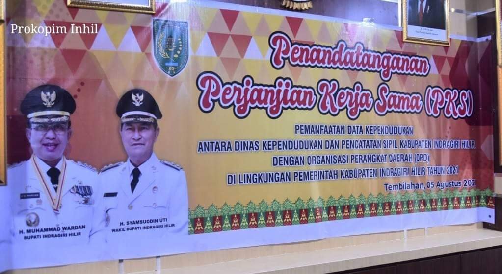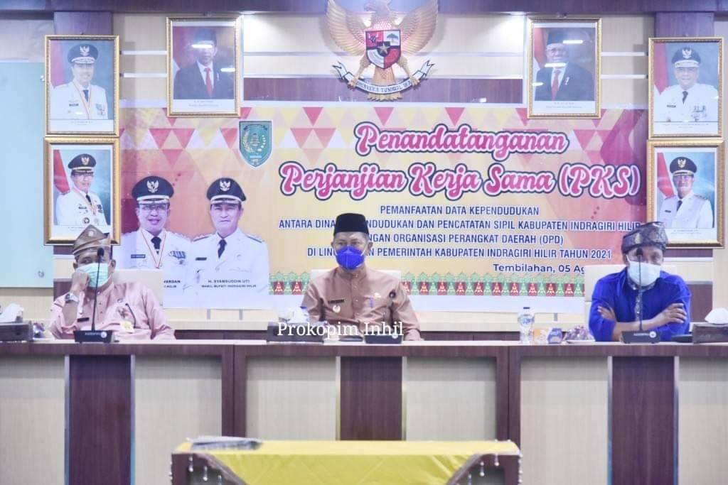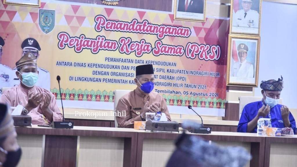 Tembilahan(SegmenNews.com)- Dalam rangka mewujudkan tertib Administrasi Kependudukan secara Nasional dan peningkatan Pelayanan Administrasi Kependudukan, Pemerintah Kabupaten Indragiri Hilir melalui Dinas Kependudukan dan Pencatatan Sipil (Disdupencapil) melaksanakan Penandatanganan Perjanjian Kerjasama (PKS) dengan Organisasi Perangkat Daerah (OPD) yang ada di lingkungan Pemerintah Kabupaten Indragiri Hilir, Kamis (5/8/2021).
