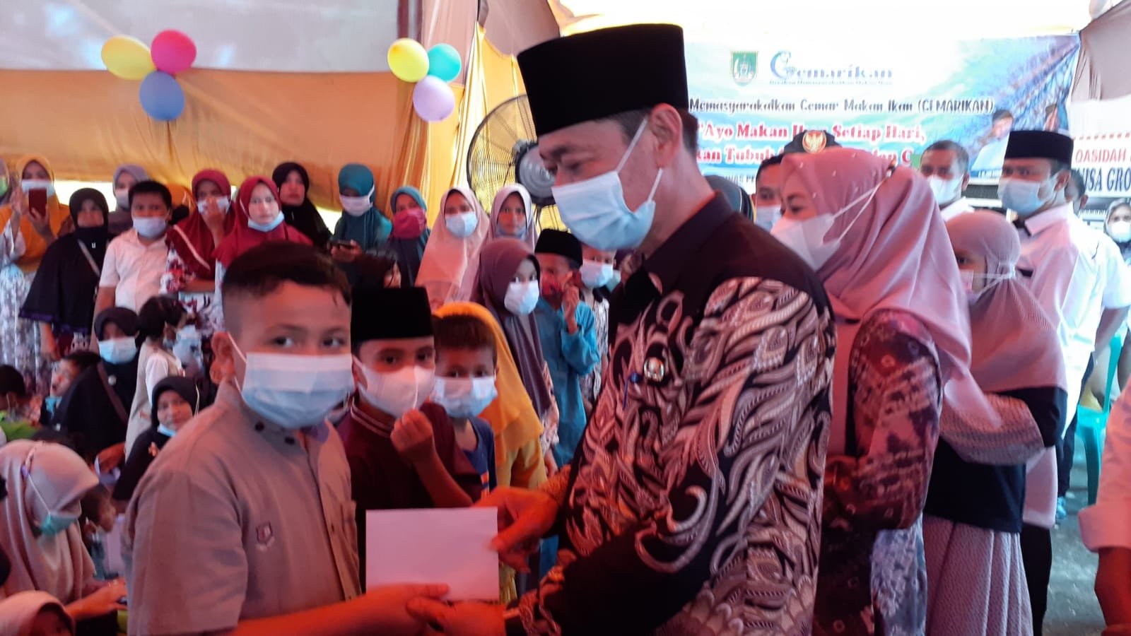 Menariknya, dalam acara Gemarikan yang ditaja Dinas Perikanan Kabupaten Rohil itu juga dilakukan pembagian santunan secara simbolis kepada 200 orang anak yatim ditaja oleh Dinas sosial Rohil, dan juga pembagian santunan secara simbolis untuk 250 orang fakir miskin ditaja oleh Basnaz Rohil.