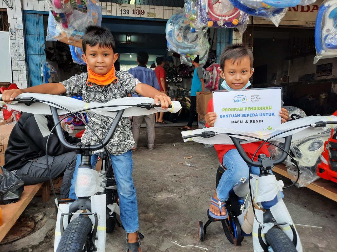 “Kami belikan sepeda, telepon genggam, meja belajar, juga perlengkapan sekolah lain yang mereka pilih sendiri sesuai kebutuhan mereka”, terang Rizky, relawan Rumah Yatim.