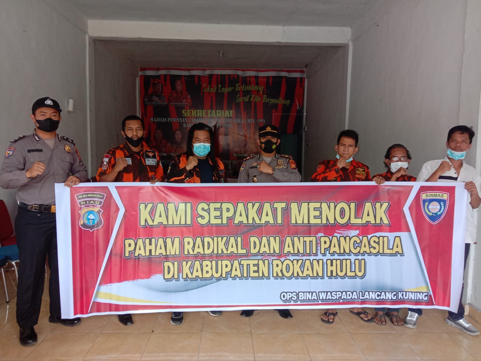 Rohul(SegmenNews.com)- Personil Satuan Pembianaan Masyarakat (Binmas), Polres Rokan Hulu (Rohul) yang dipimpin AKP Hermawan operasi bina waspada Satuan Tugas Pembinaan dan Penyuluhan (Satgas-Binluh), di Kantor Majelis Pimpinan Cabang (MPC) Pemuda Pancasila (PP) Rohul, Senin (23/8/2021).