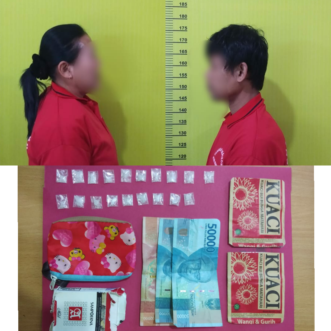 Adapun Barang Bukti (BB) Tersangka I, 19 paket Narkotika jenis Sabu berat kotor 2,35 Gram, 2 Lembar Plastik Kuaci, 1 Kotak Rokok Mrek Sampoerna, 1 Dompet Warna Merah dan Uang Tunai Sebesar Rp.200.000