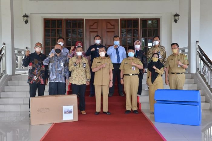 Pekanbaru(SegmenNews.com)- Gubernur Riau (Gubri) Syamsuar menerima bantuan 26 unit hospital bed untuk Rumah Singgah Oksigen Gotong Royong Provinsi Riau di Halaman Rumah Dinas Gubernur Riau, Senin (30/8/21).