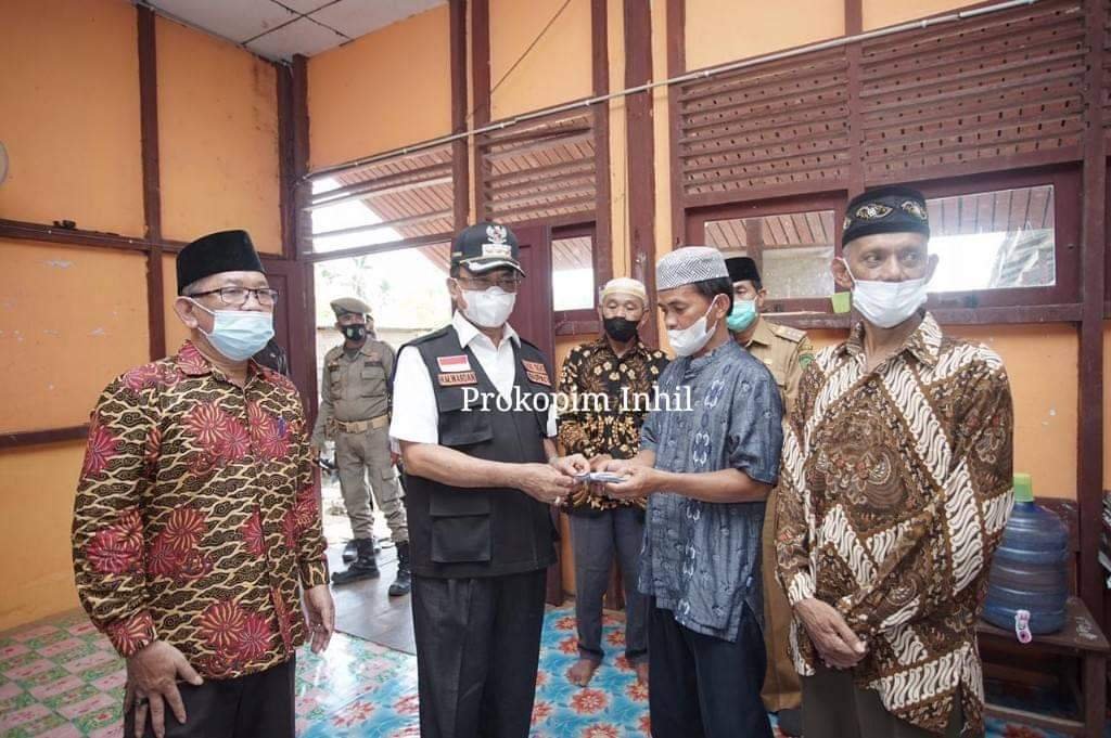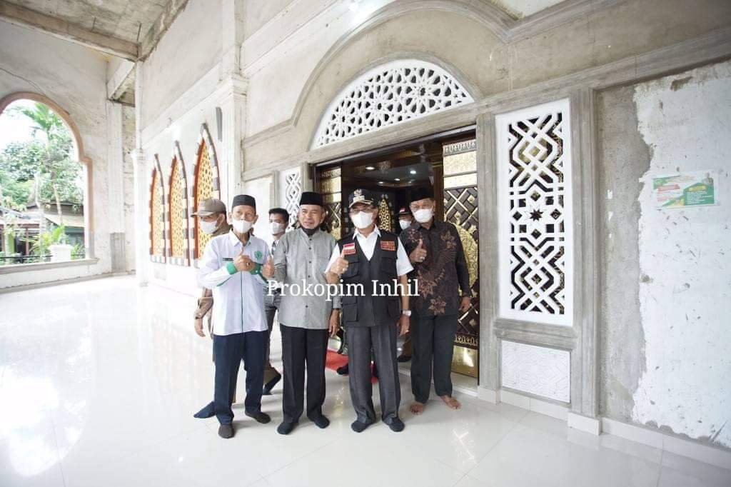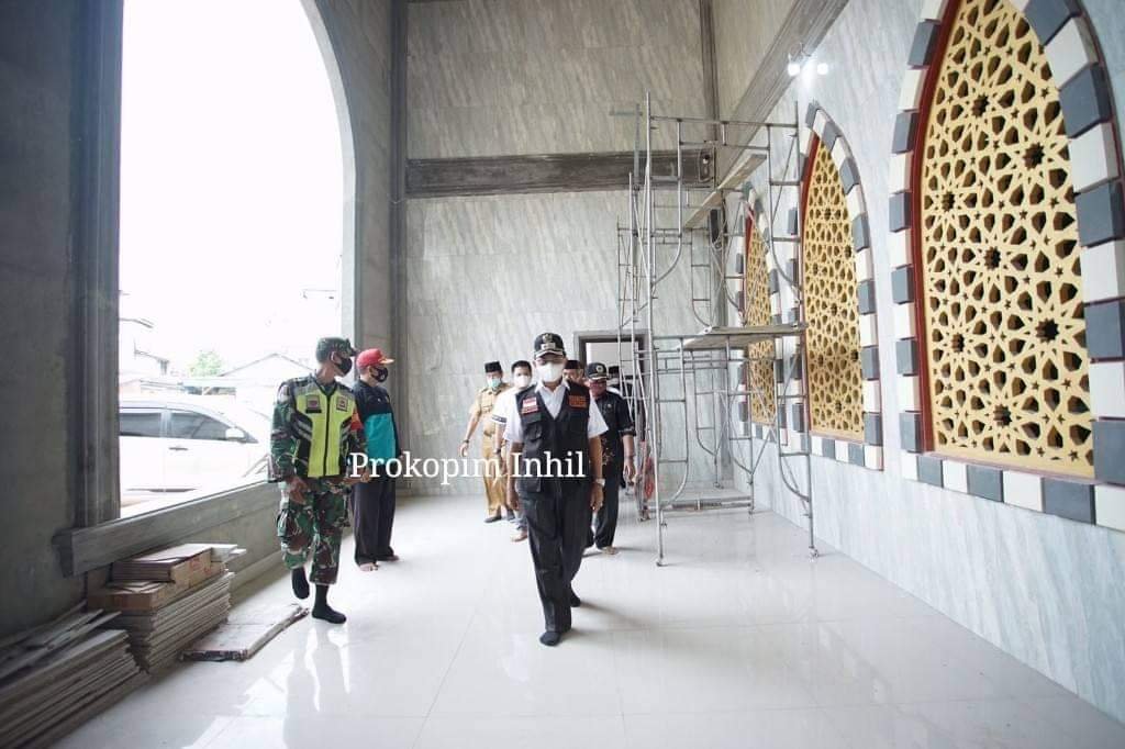 Seusai melihat pelaksanaan donor darah yang berlokasi di jl.SMP depan masjid Jami Pulau Kijang Bupati Inhil juga melakukan peninjauan ke Masjid Jami Pulau Kijang yang saat ini sedang di renovasi.