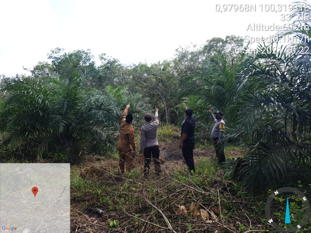 Dari penelusuran tim Kapolsek Rambah Hilir sekira pukul 10.30 WIB Kapolsek Rambah Hilir, titik koordinat kebun Warsono saat melihat cahaya dari langit : 0.97975424N 100.31935159E.***(fit)
