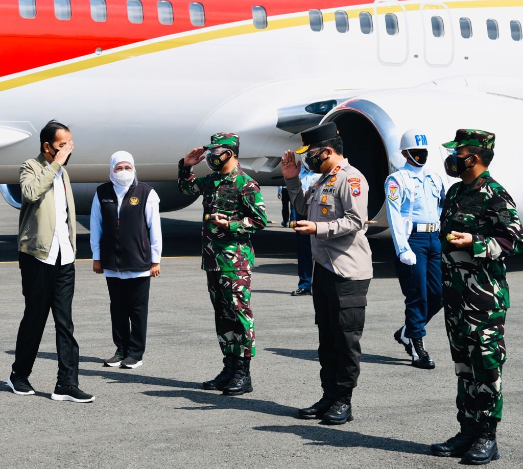Beberapa pejabat, nampak hadir menyambut dan mendampingi kunjungan yang dilakukan oleh Presiden, salah satunya Pangdam V/Brawijaya, Mayjen TNI Suharyanto.