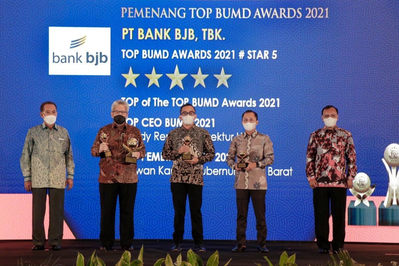 Dalam ajang tersebut, Bank BJB dinobatkan sebagai TOP of the TOP BUMD 2021, TOP BUMD Awards 2021, TOP CEO BUMD 2021 yang dianuegerahkan kepada Direktur Utama bank bjb Yuddy Renaldi, dan TOP Pembina BUMD 2021 untuk Gubernur Jawa Barat Ridwan Kamil.