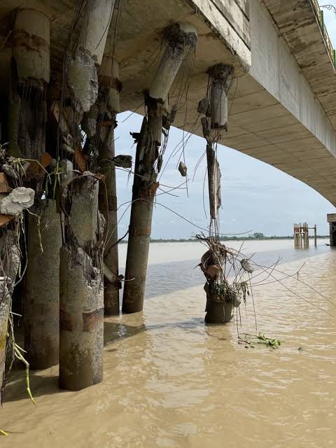 “Jembatan ini untuk sementara masih bisa dilalui dengan muatan maksimum 5 ton. Nanti biar tidak dilewati truk tonase besar kita pasang portal. Kemudian pada pilar 3 dan 5 jembatan nanti dipasang pengaman supaya jangan dilalui kendaraan, karena bagian itu tiang penyangganya sudah hancur,” jelasnya.