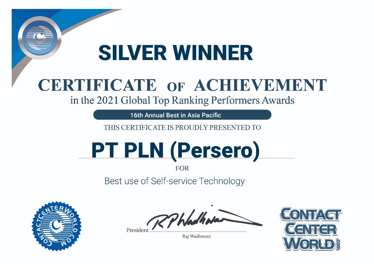 Tahun ini PLN berhasil meraih 3 penghargaan yakni Gold Winner untuk 2 kategori yakni Best Contact Center dan Best Use Social Media in the Contact Center, serta satu Silver Winner untuk kategori Best Use of Self-Service Technology. Seluruhnya didedikasikan untuk Contact Center layanan pelanggan PLN 123 yang kian berkembang di era digital ini.