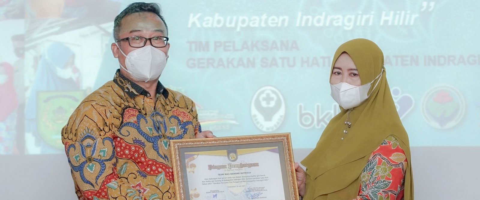 Pada kesempatan tersebut juga di berikannya piagam penghargaan Ketua Gerakan Satu Hati Kab.Inhil memberikan Kepada Team Max Danone Nutricia yang diterima langsung oleh Bapak Haryadi Putra, Sebagai Apresiasi atas dukungan dan peran sertanya dalam ikut mengatasi persoalan Balita Gizi Buruk dan Gizi Kurang di inhil.