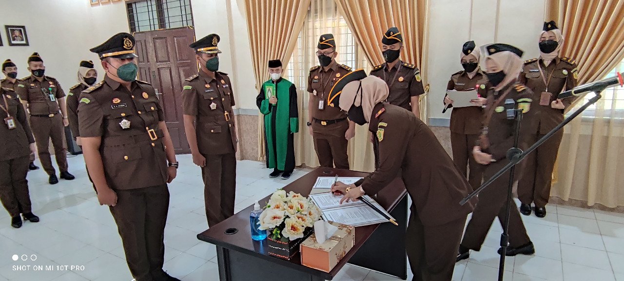 Pelalawan(SegmenNews.com)- Kepala Kejaksaan Negeri Kabupaten Pelalawan, Silpia Rosalina, SH, MH melantik dan mengambil sumpah jabatan Kepala Seksi Intelijen (Kasi Intel), Fusthathul Amul Huzni, S.H, Senin pagi (4/10/2021).