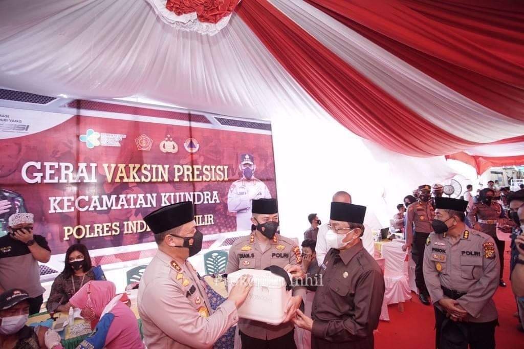 Dalam Kunjungan kerja satu harinya di Kabupaten Indragiri Hilir, Kapolda Riau bersama Bupati Inhil H. M. Wardan dan Kapolres Indragiri Hilir meninjau pelaksanaan vaksinasi masal sekaligus menyerahkan bantuan 1500 dosis vaksin untuk masyarakat Kecamatan Kuindra serta memberikan paket bantuan sosial kepada masyarakat di Desa Teluk Dalam.