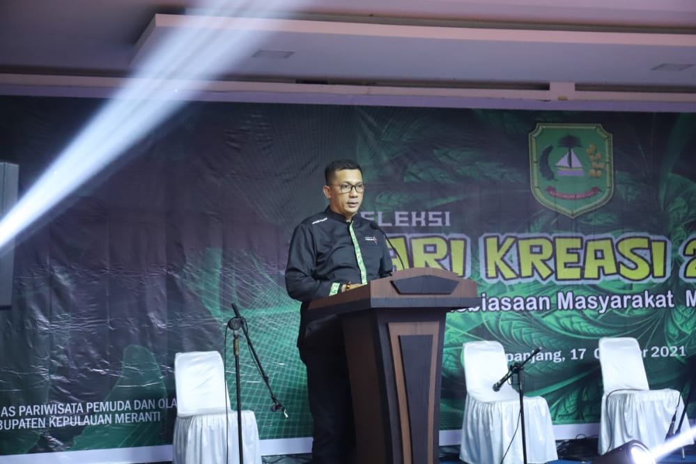 Kemudian Bupati Meranti H Muhammad Adil SH mengatakan bahwa. Atas nama Pemerintah Kabupaten Kepulauan Meranti saya menyambut baik dan menyampaikan apresiasi yang setinggi-tingginya atas terlaksana kegiatan Seleksi Tari Kreasi Kepulauan Meranti Tahun 2021 yang dilaksanakan oleh Disparpora.