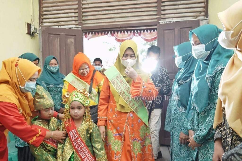 Dalam kesempatan tersebut Bunda Paud kabupaten Indragiri Hilir juga memberikan bantuan kepada balita Gizi Kurang, berupa susu dan mainan edukatif.
