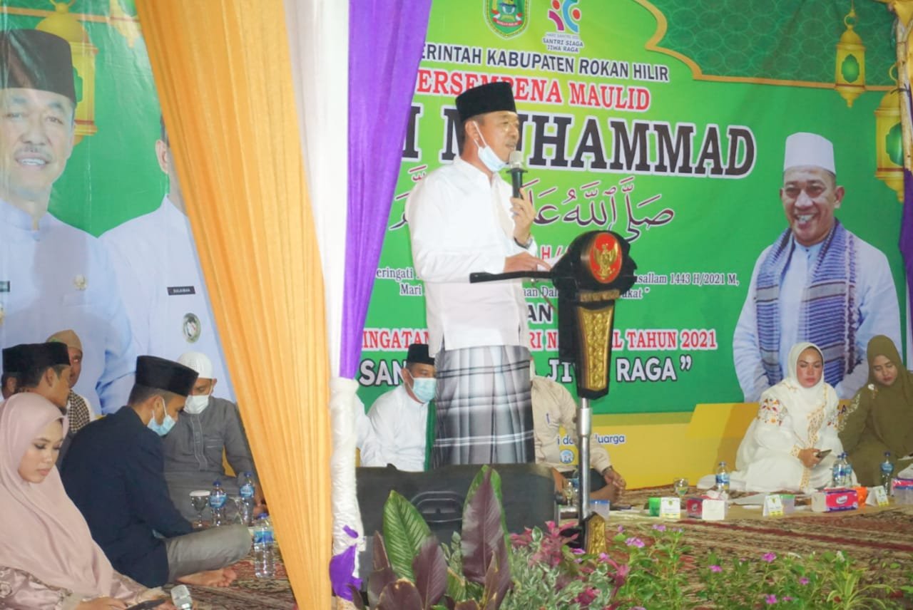 Sehingga, Bupati mengajak seluruh santri yang ada di Kabupaten Rohil untuk bersama-sama membangun Negeri yang berjuluk seribu kubah.