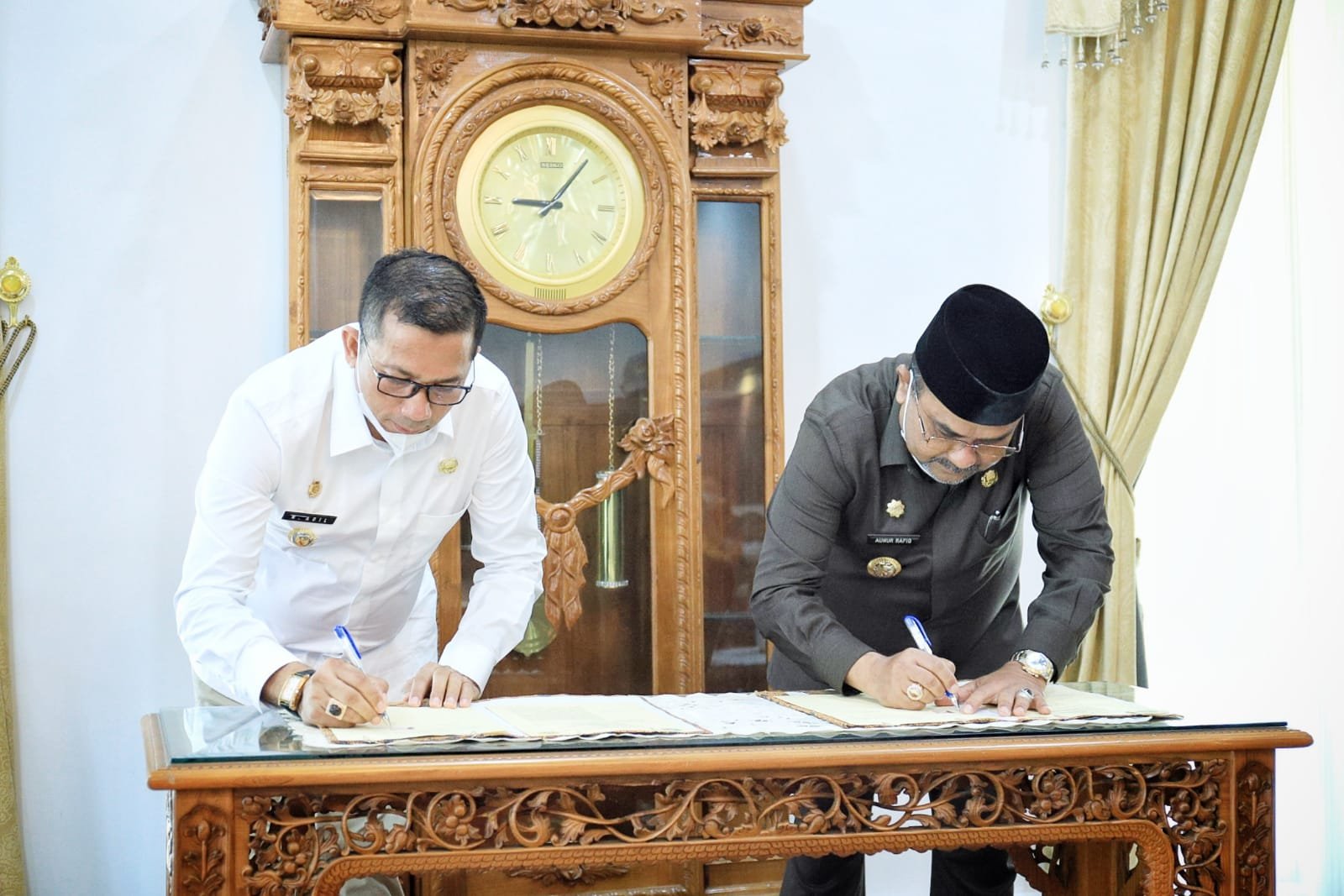Penandatanganan MoU di Aula Kediaman Bupati Karimun juga dilakukan oleh Plt. Kadis Kesehatan Kabupaten Kepulauan Meranti M. Fahri,SKm dengan Direktur RSUD Muhammad Sani Kabupaten Karimun, dr. Rosdiana.